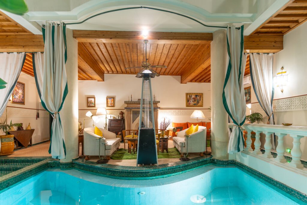 If you book the riad exclusively, you’ll be able to enjoy all the amenities privately, including the rooftop, heated pool, traditional hammam, and the pool-view lounge. If you book just one room, these shared spaces will be accessible to other guests as well.